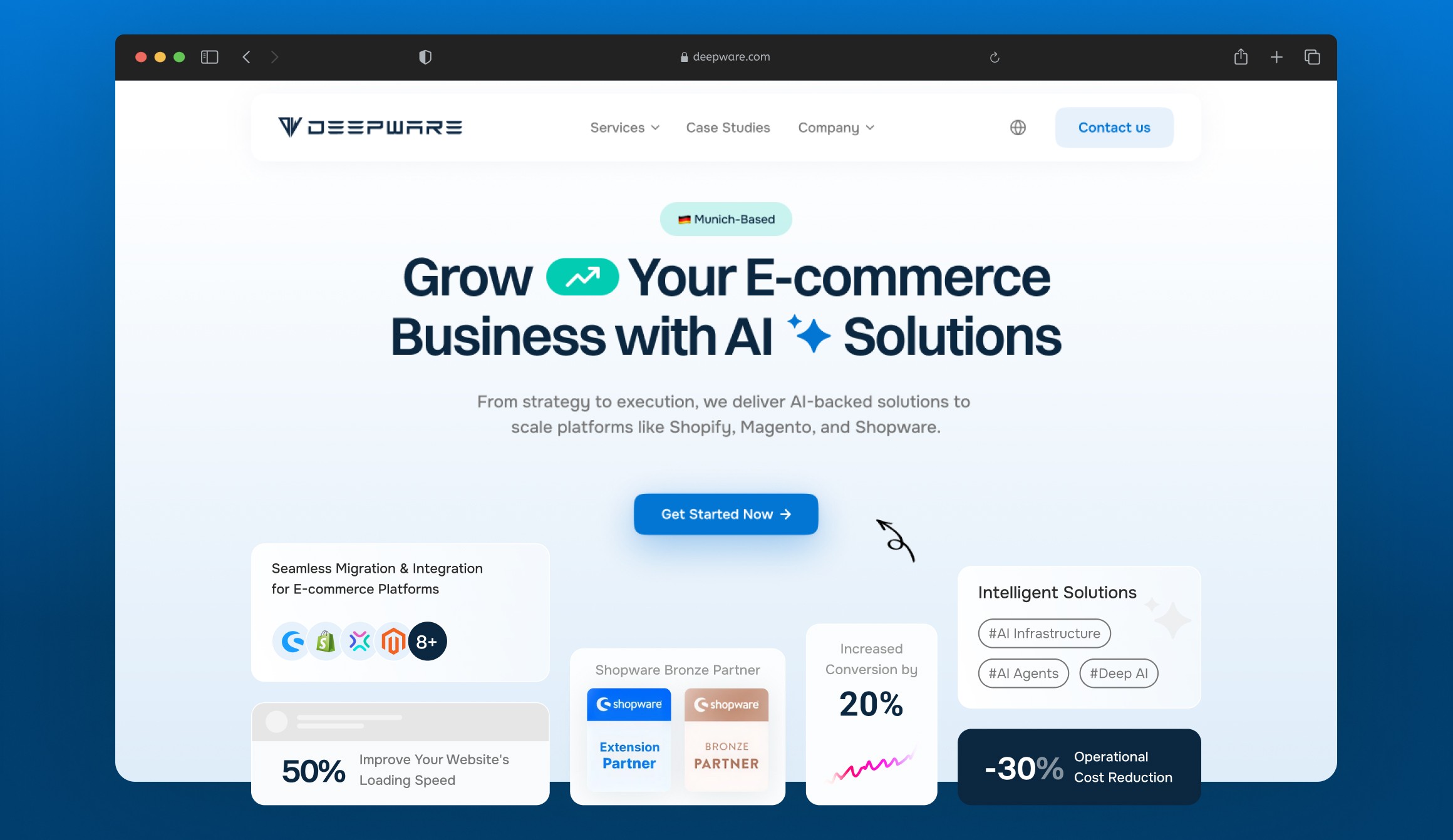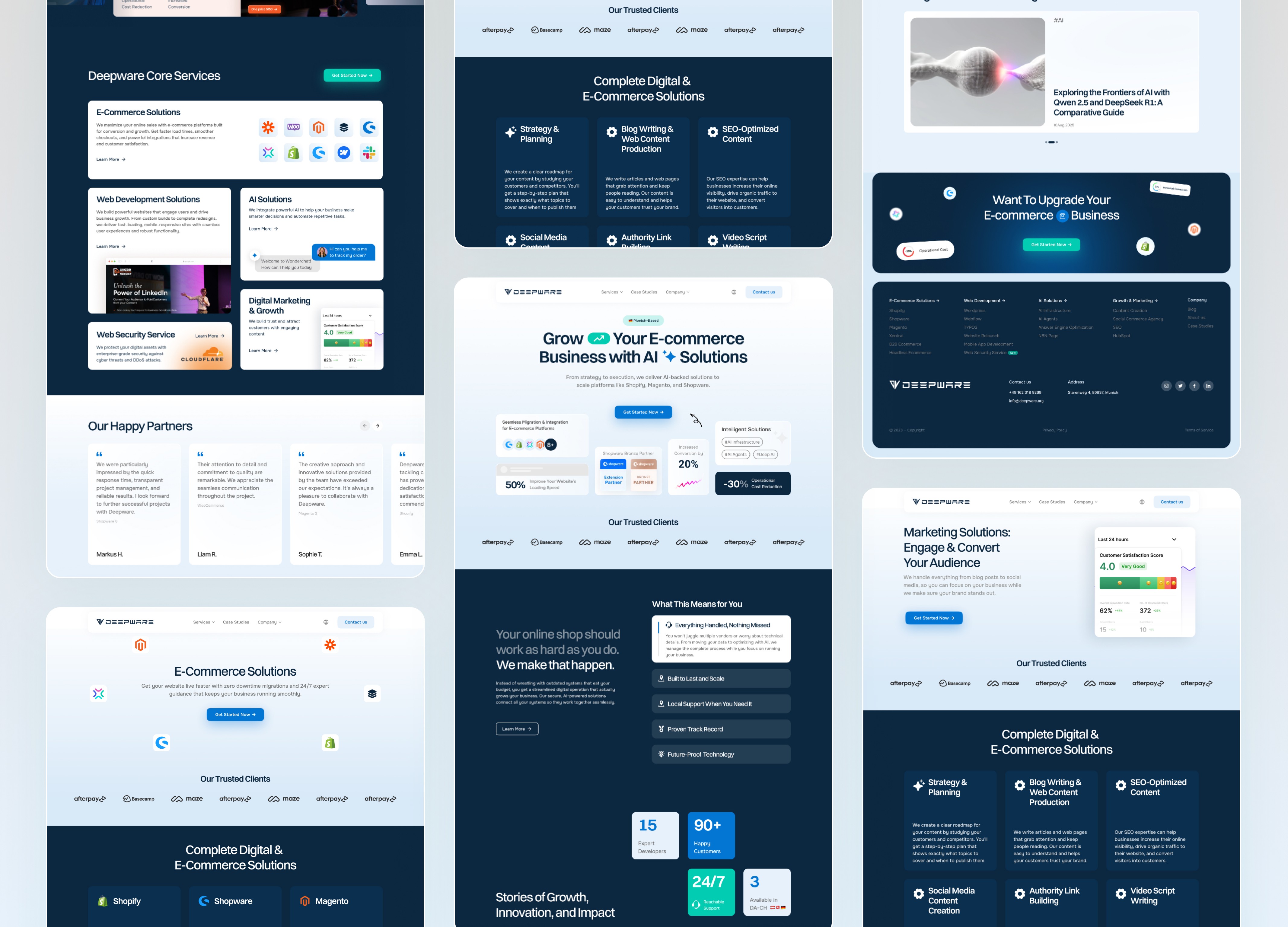 Designed a high-converting UI/UX for Deepware, a Munich-based agency providing AI, cloud, and e-commerce solutions to B2B companies across Europe. Built a scalable 30-page system that turns complex technical services into clear, accessible information for enterprise decision-makers.